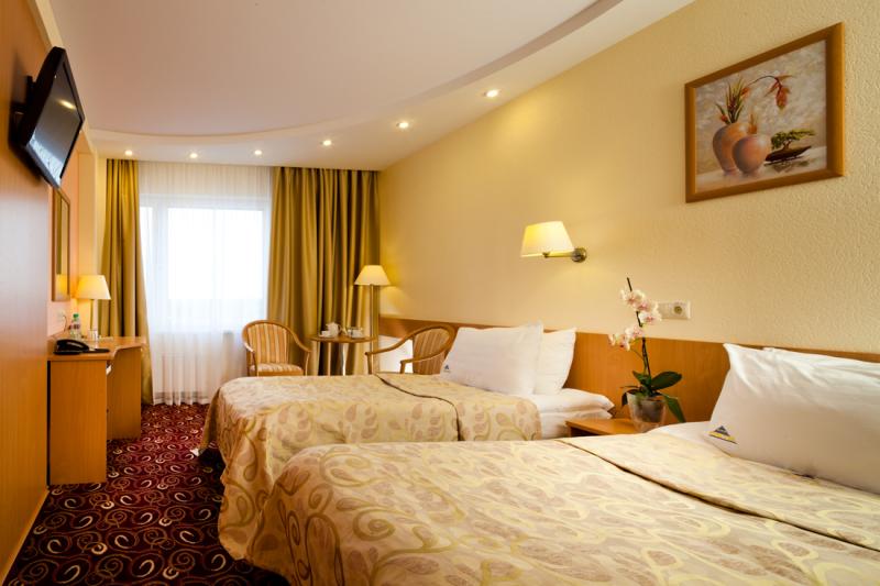 Вы можете выбрать номер первого класса, оборудованный платяным шкафом, креслами, журнальным столиком, холодильником, двумя стандартными кроватями или одной двуспальной. Есть возможность установить дополнительное спальное место. К Вашим услугам телевизор, телефонная связь, возможность высокоскоростного доступа в Интернет.