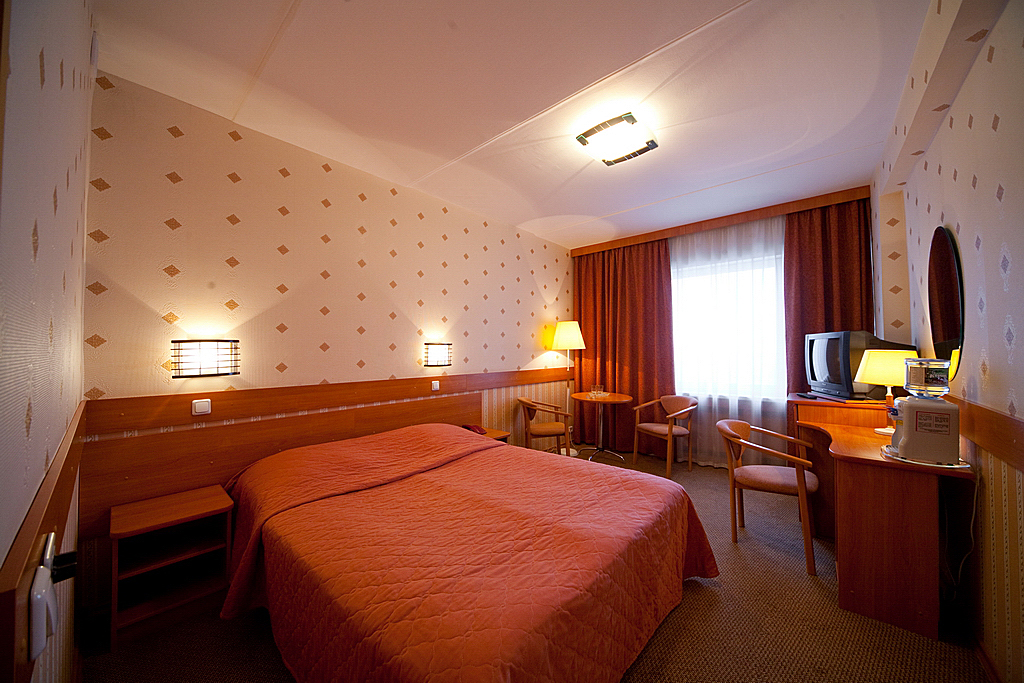 Номер после капитального ремонта. Основное отличие от стандартных номеров: новая мебель и сантехника импортного производства. Одна жилая комната и санузел. Общая площадь — 21 кв.м.